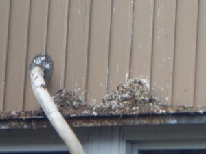調査に伺うと、軒下の隙間に居座っていて、下は糞尿で大惨事になっていました。